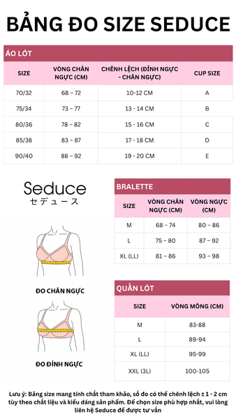 BẢNG ĐO SIZE SẢN PHẨM SEDUCE: